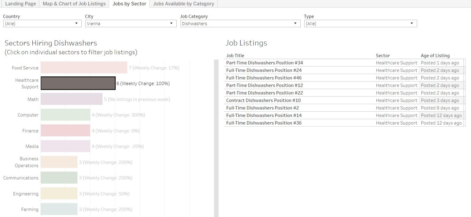In Vienna, there are 6 dishwasher jobs available in the Healthcare Support sector, and these Jobs doubled in the last weeks. This sector seems the most promising for your skill!